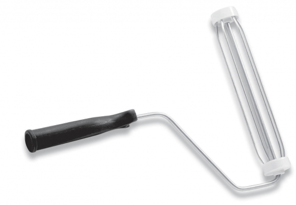 Držák Acme Heavy-Duty Roller na válečky o maximální šířce 22,5 cm v nerezovém provedení s ergonomickou plastovou rukojetí na konci s otvorem na teleskopickou tyč. Držák se vyznačuje lehce se otáčející částí na váleček vybavenou kluznými ložisky.